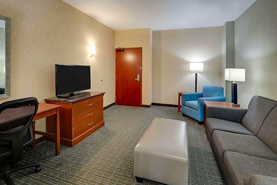 A flat-screen TV, microwave and refrigerator are included in this spacious suite.